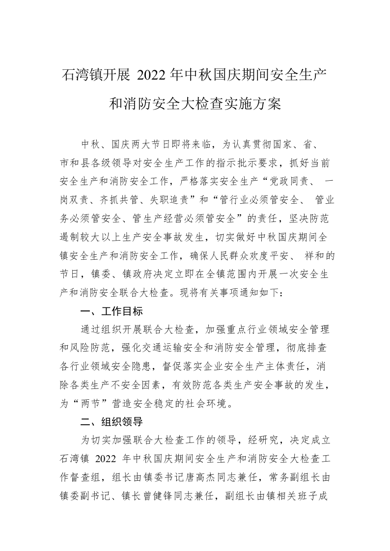 / 石湾镇开展2022年中秋国庆期间安全生产和消防安全大检查实施方案(20220914)
