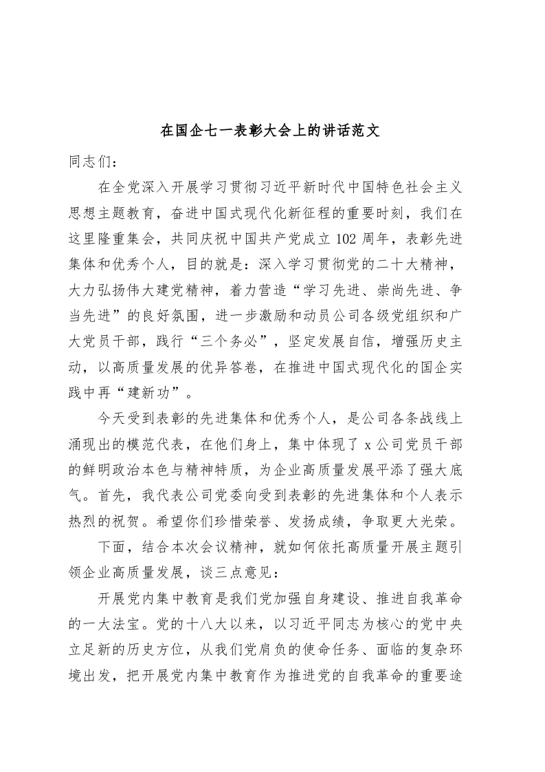 / 国有企业七一建党节表彰大会讲话主题教育集团公司