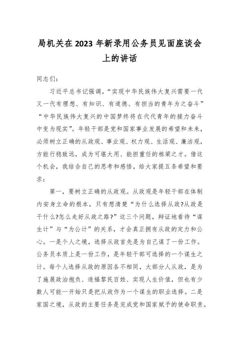 / 局机关在2023年新录用公务员见面座谈会上的讲话