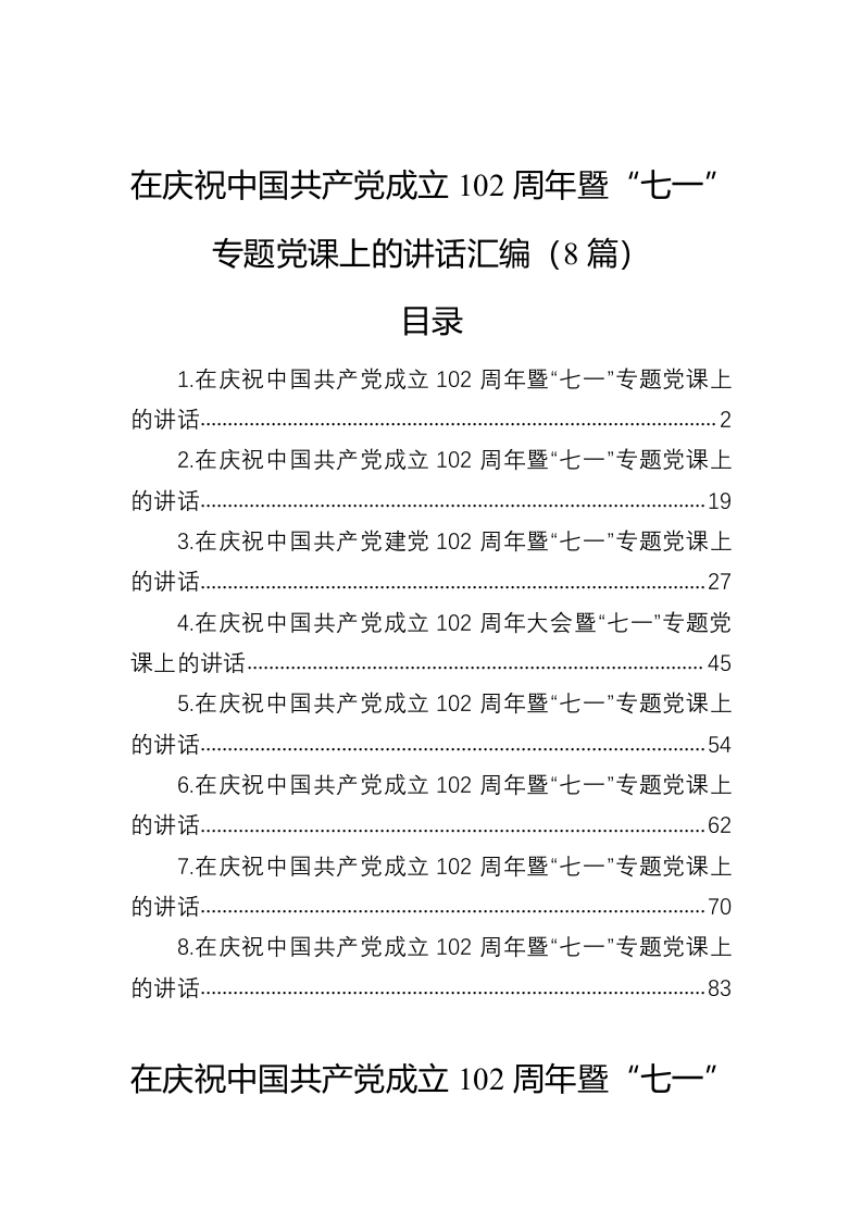 / 在庆祝中国共产党成立102周年暨“七一”专题党课上的讲话汇编(8篇)