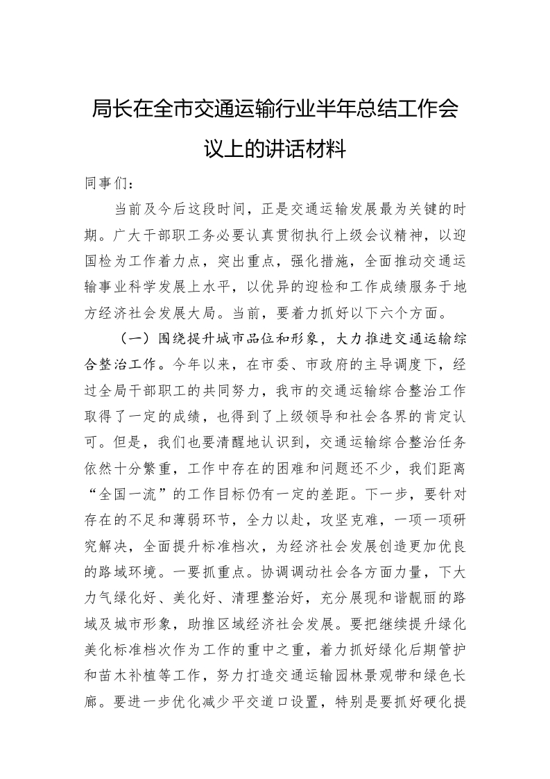 / 局长在全市交通运输行业半年总结工作会议上的讲话材料