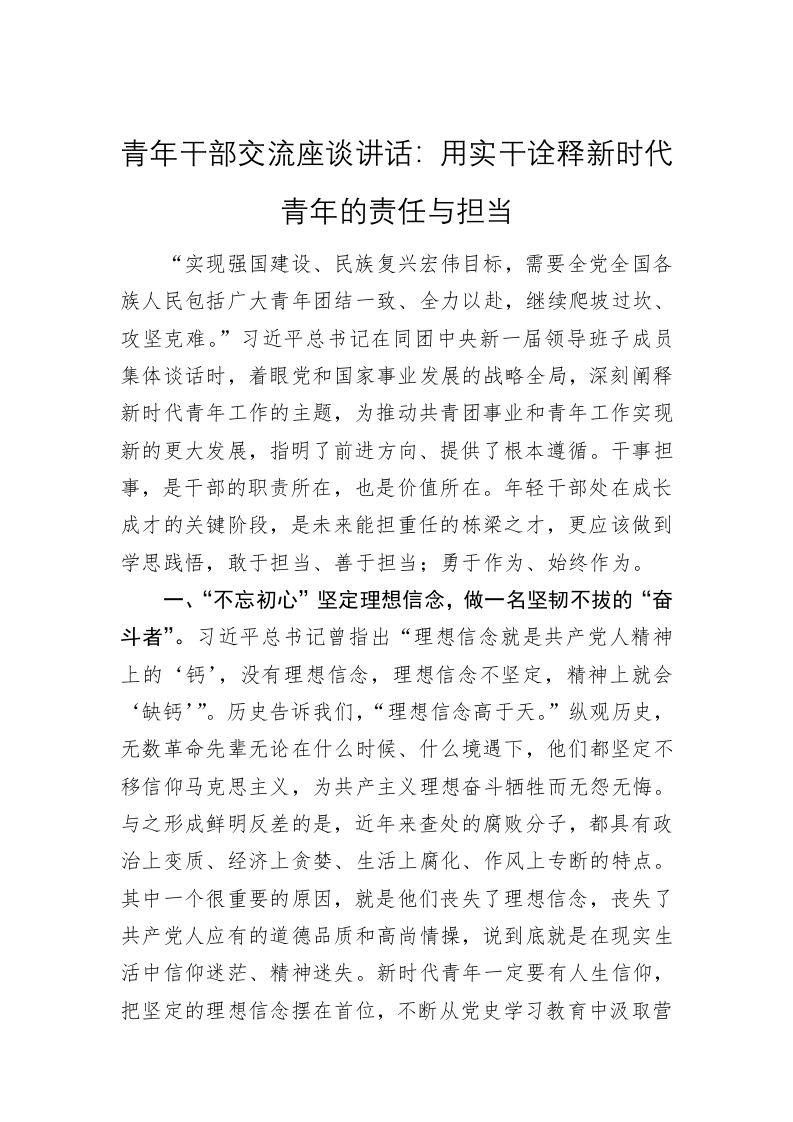 青年干部交流座谈讲话:用实干诠释新时代青年的责任与担当