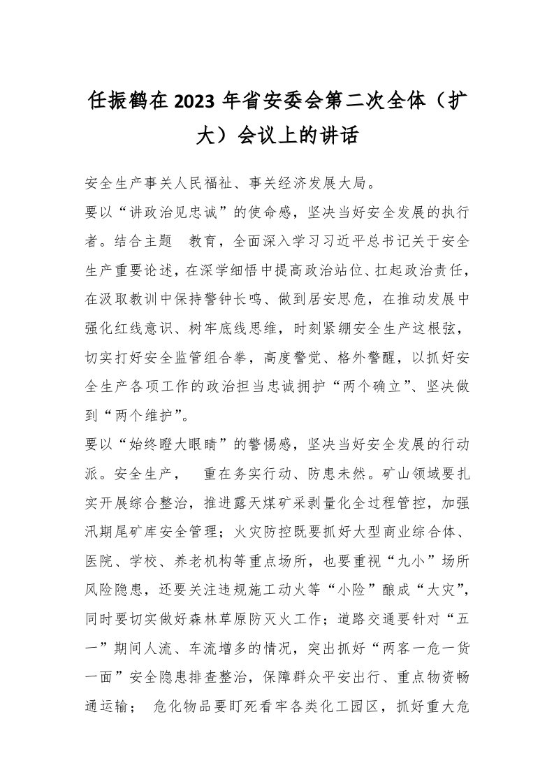 / 任振鹤在2023年省安委会第二次全体(扩大)会议上的讲话