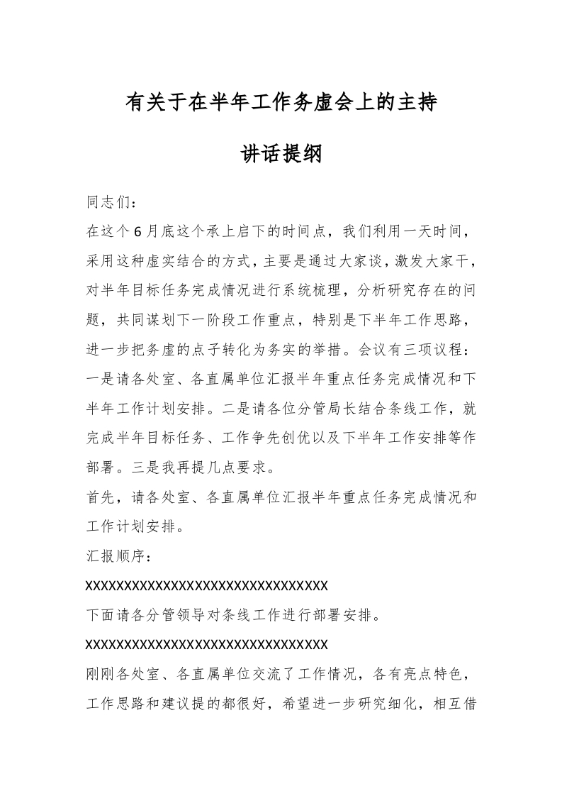 / 有关于在半年工作务虚会上的主持讲话提纲