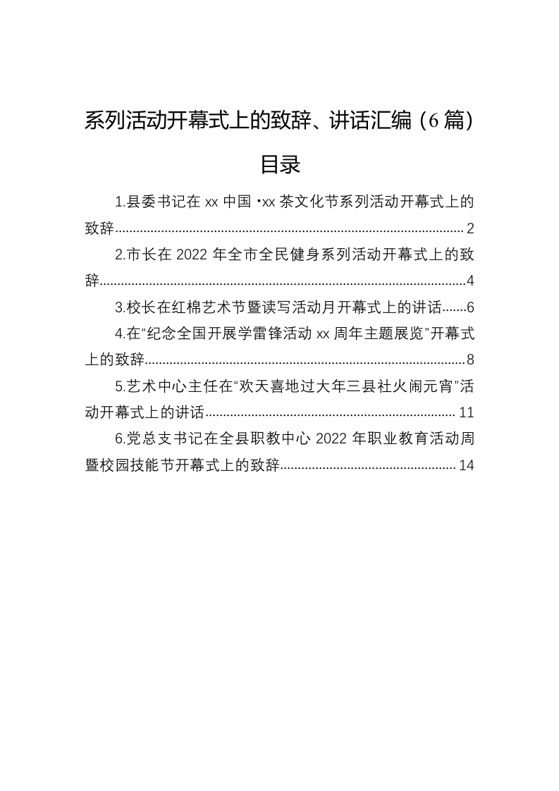 / 系列活动开幕式上的致辞、讲话汇编(6篇)