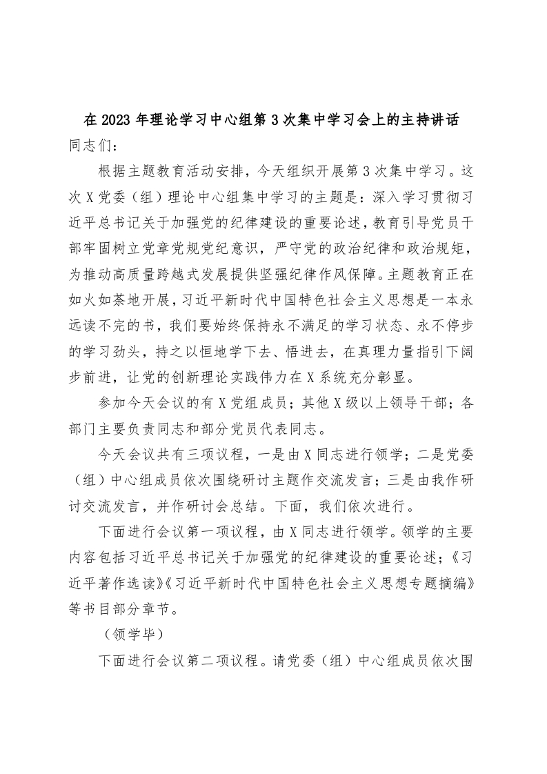 / 在2023年理论学习中心组第3次集中学习会上的主持讲话