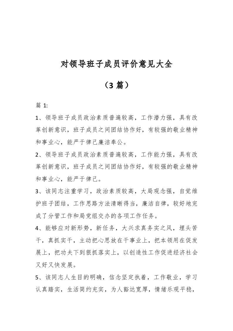 (3篇)对领导班子成员评价意见大全