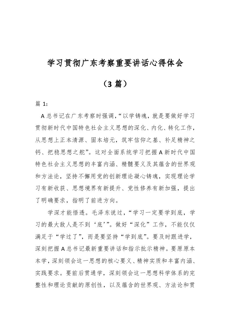 / (3篇)学习贯彻广东考察重要讲话心得体会