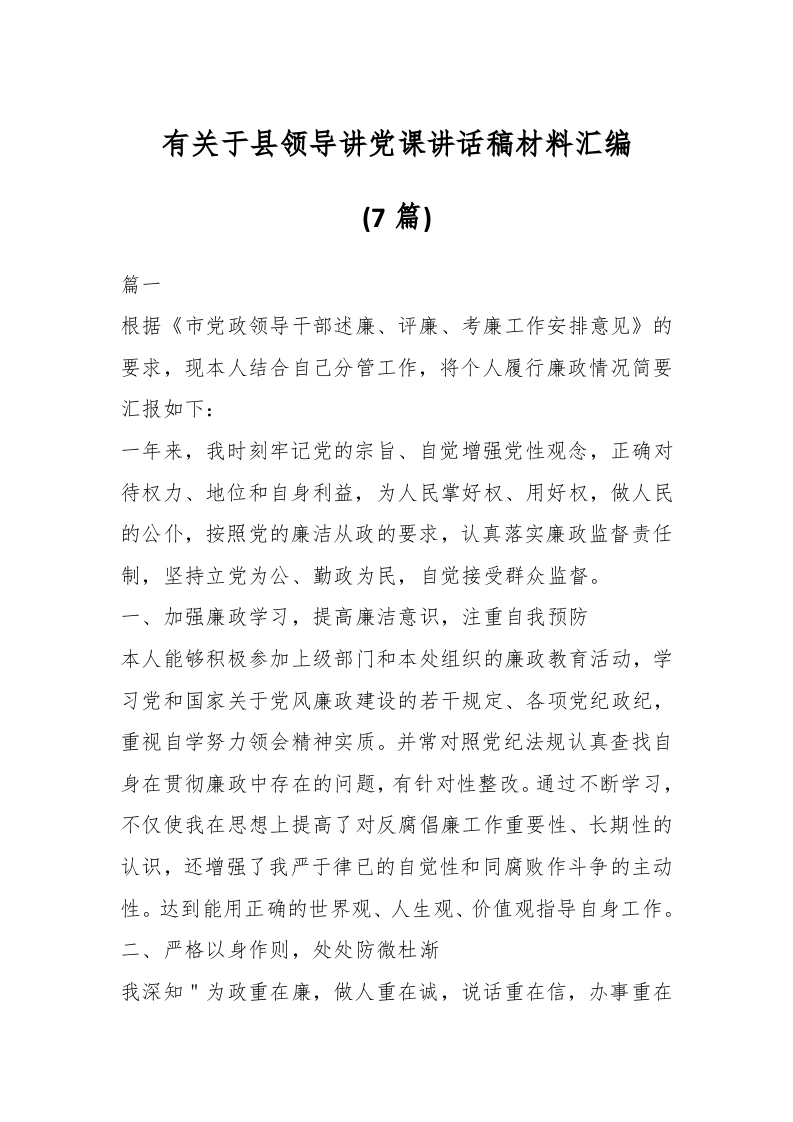 / (7篇)有关于县领导讲党课讲话稿材料汇编