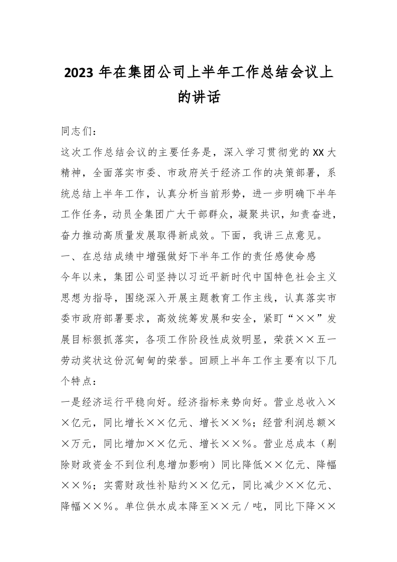/ 2023年在集团公司上半年工作总结会议上的讲话