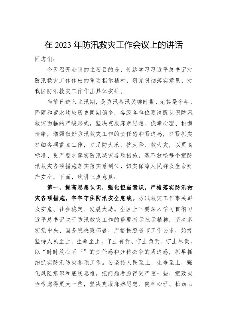 / 在2023年防汛救灾工作会议上的讲话