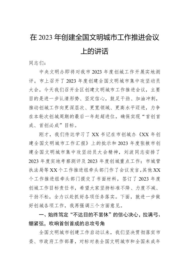 / 在2023年创建全国文明城市工作推进会议上的讲话