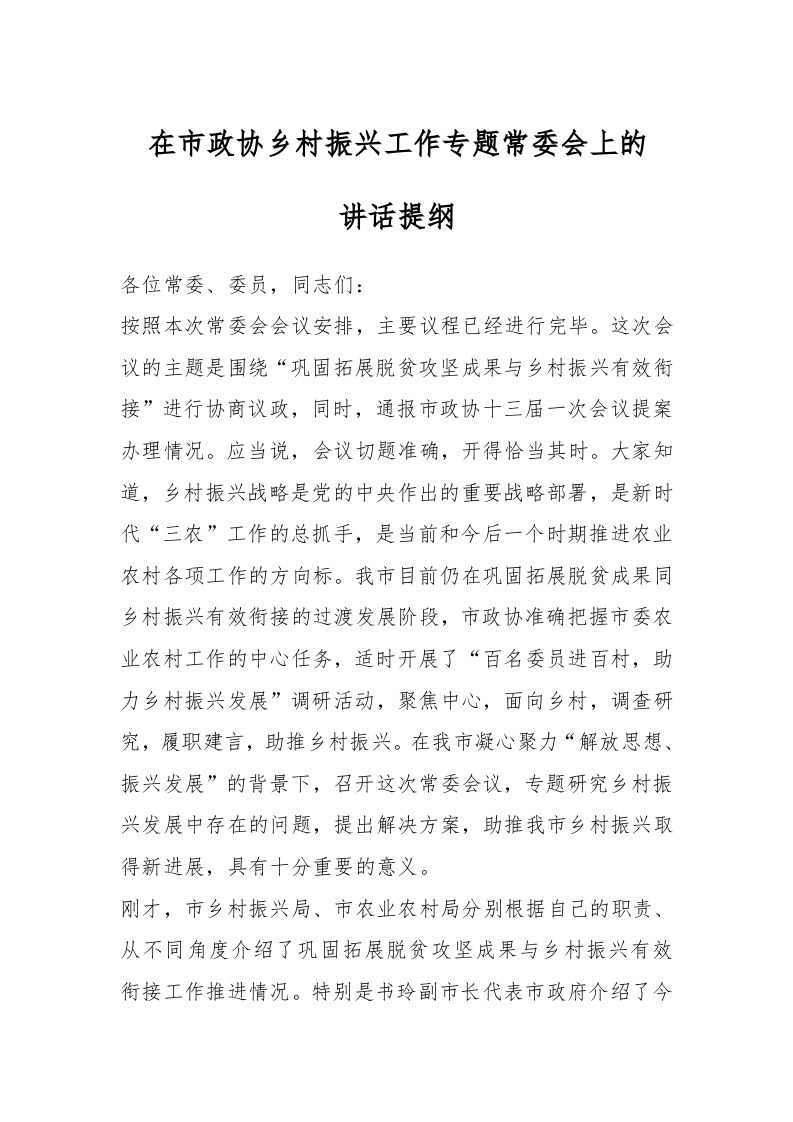 / 在市政协乡村振兴工作专题常委会上的讲话提纲
