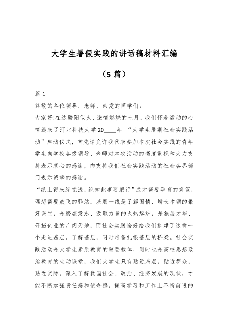 / (5篇)大学生暑假实践的讲话稿材料汇编