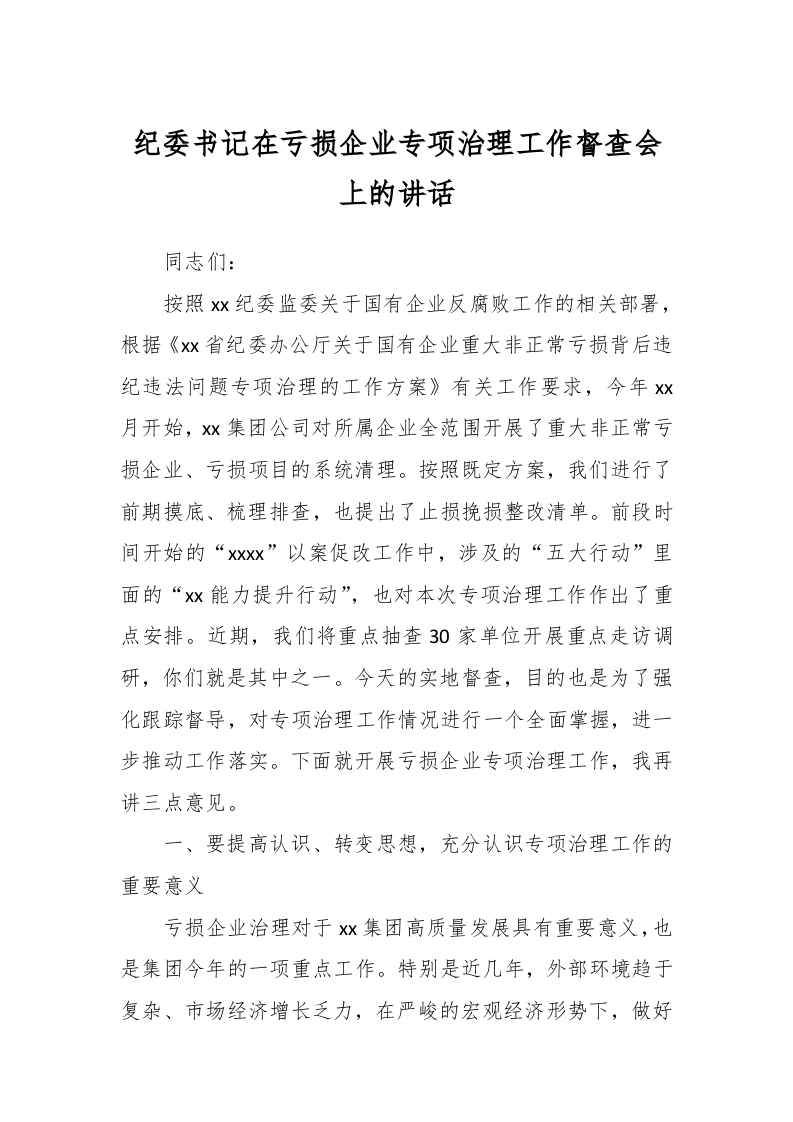 / 纪委书记在亏损企业专项治理工作督查会上的讲话
