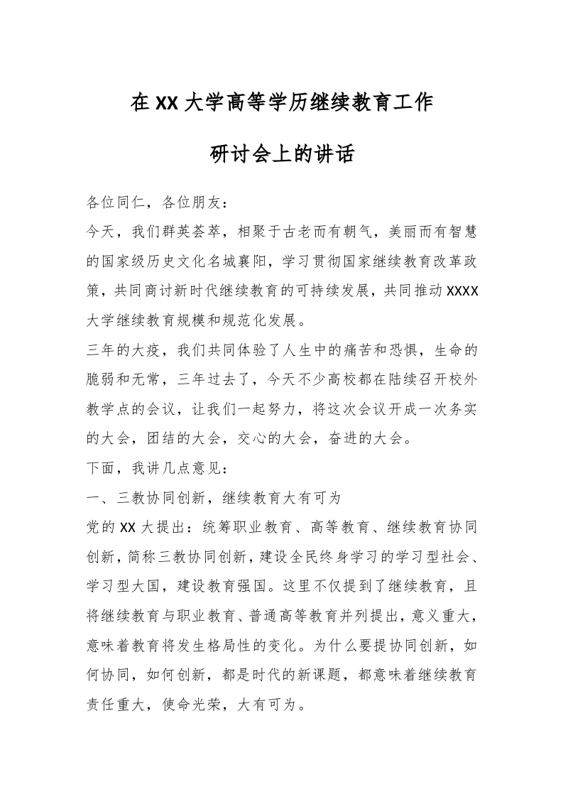 / 在XX大学高等学历继续教育工作研讨会上的讲话