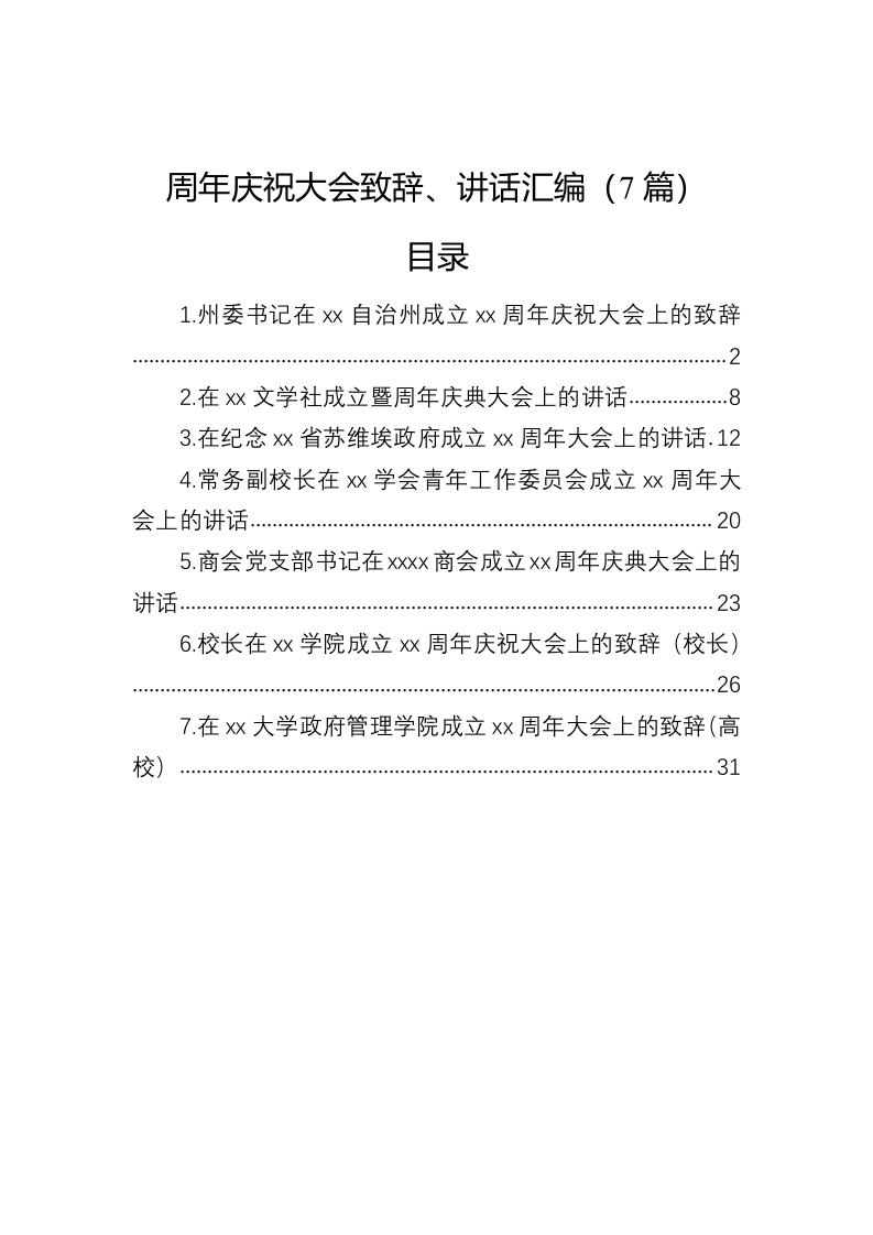 / 周年庆祝大会致辞、讲话汇编(7篇)