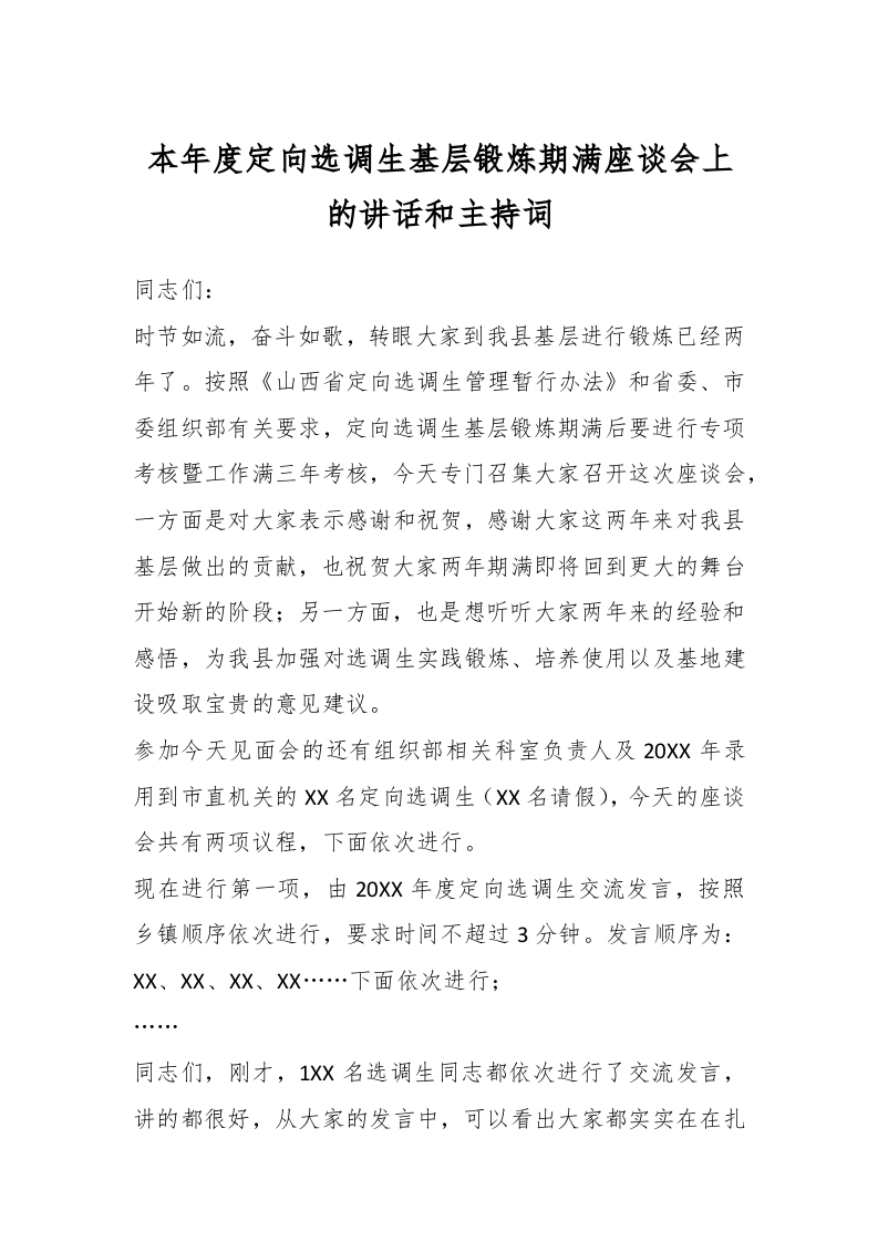 / 本年度定向选调生基层锻炼期满座谈会上的讲话和主持词