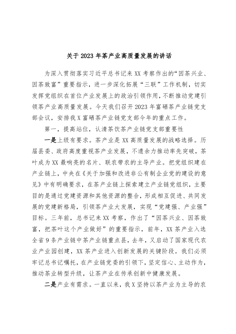 / 关于2023年茶产业高质量发展的讲话