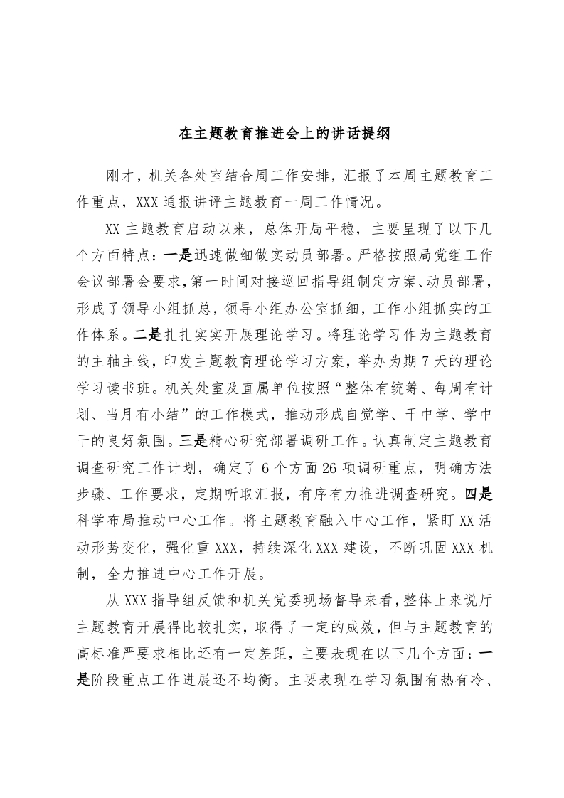 / 在主题教育推进会上的讲话提纲