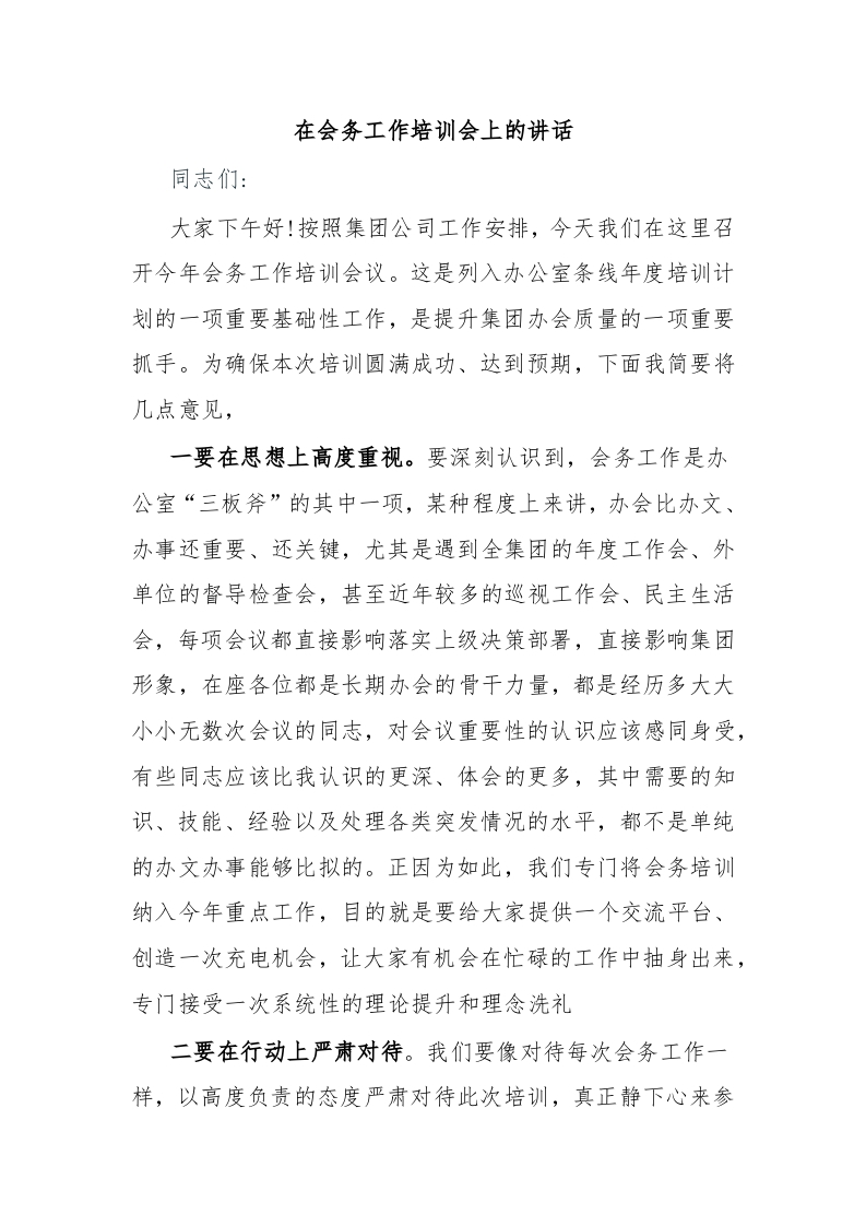 / 在会务工作培训会上的讲话