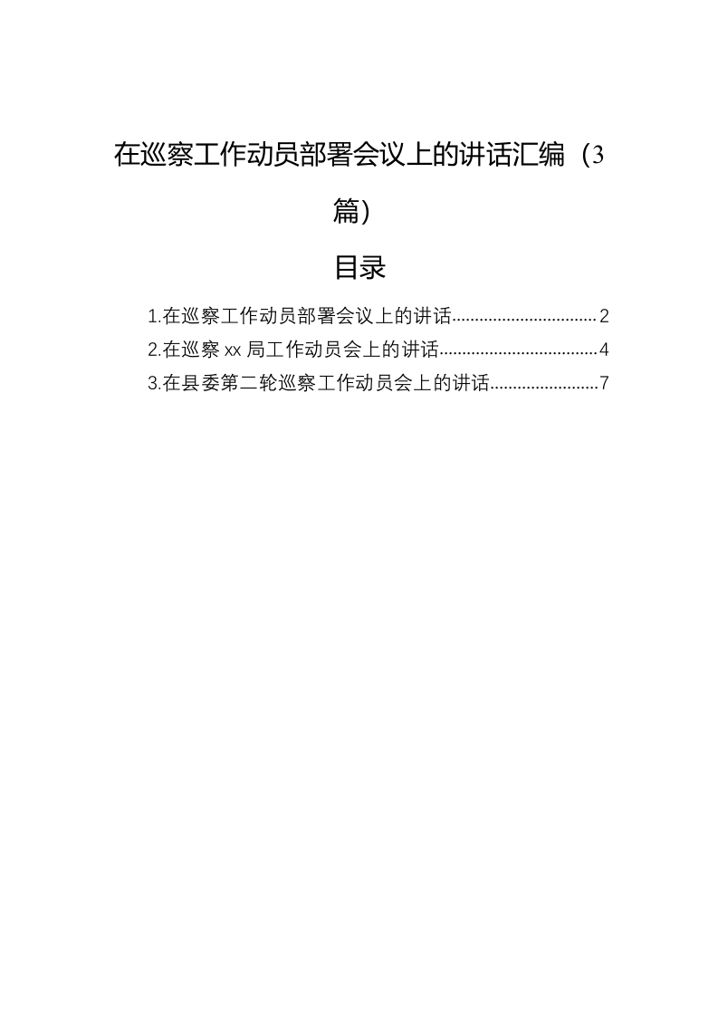 / 在巡察工作动员部署会议上的讲话汇编(3篇)
