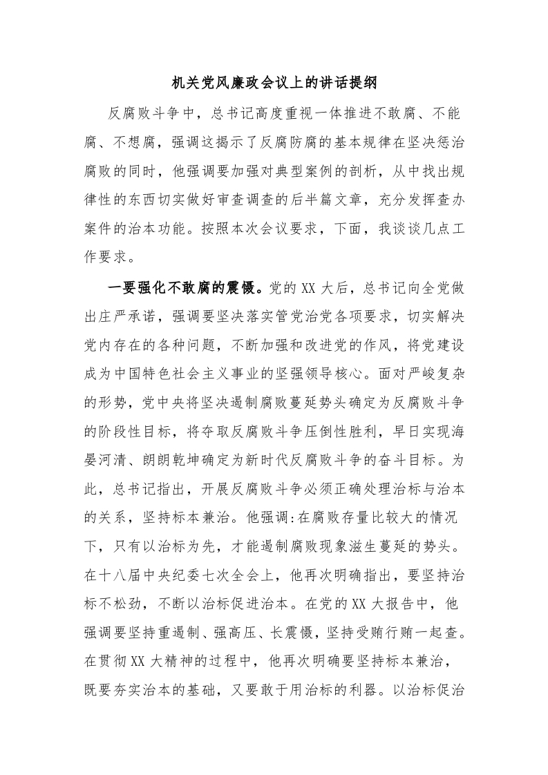 / 机关党风廉政会议上的讲话提纲