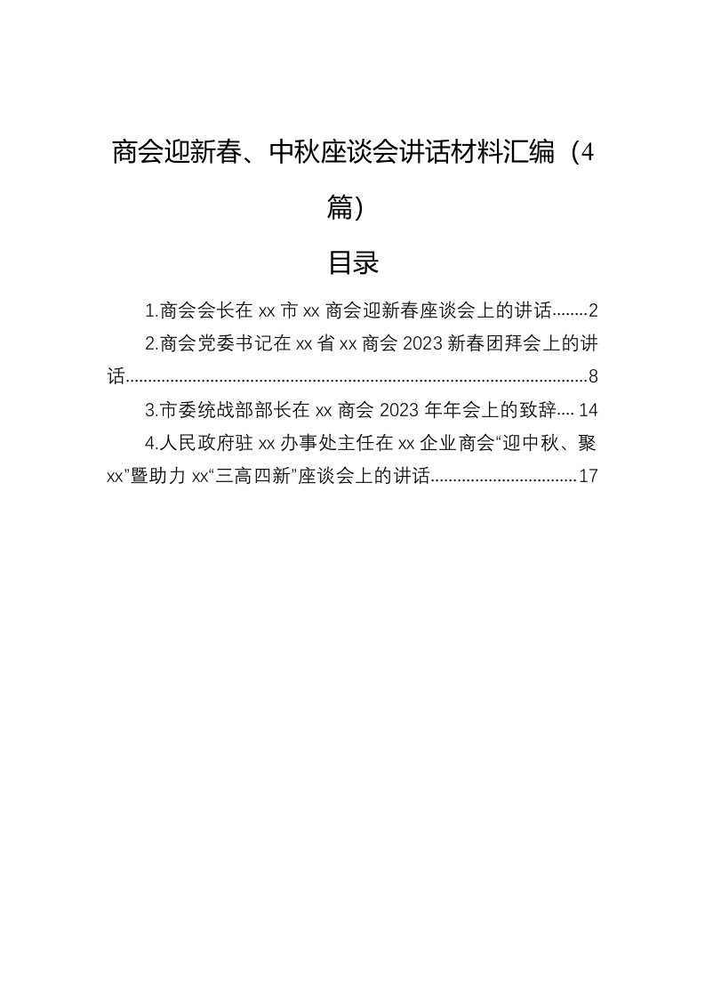 / 商会迎新春、中秋座谈会讲话材料汇编(4篇)