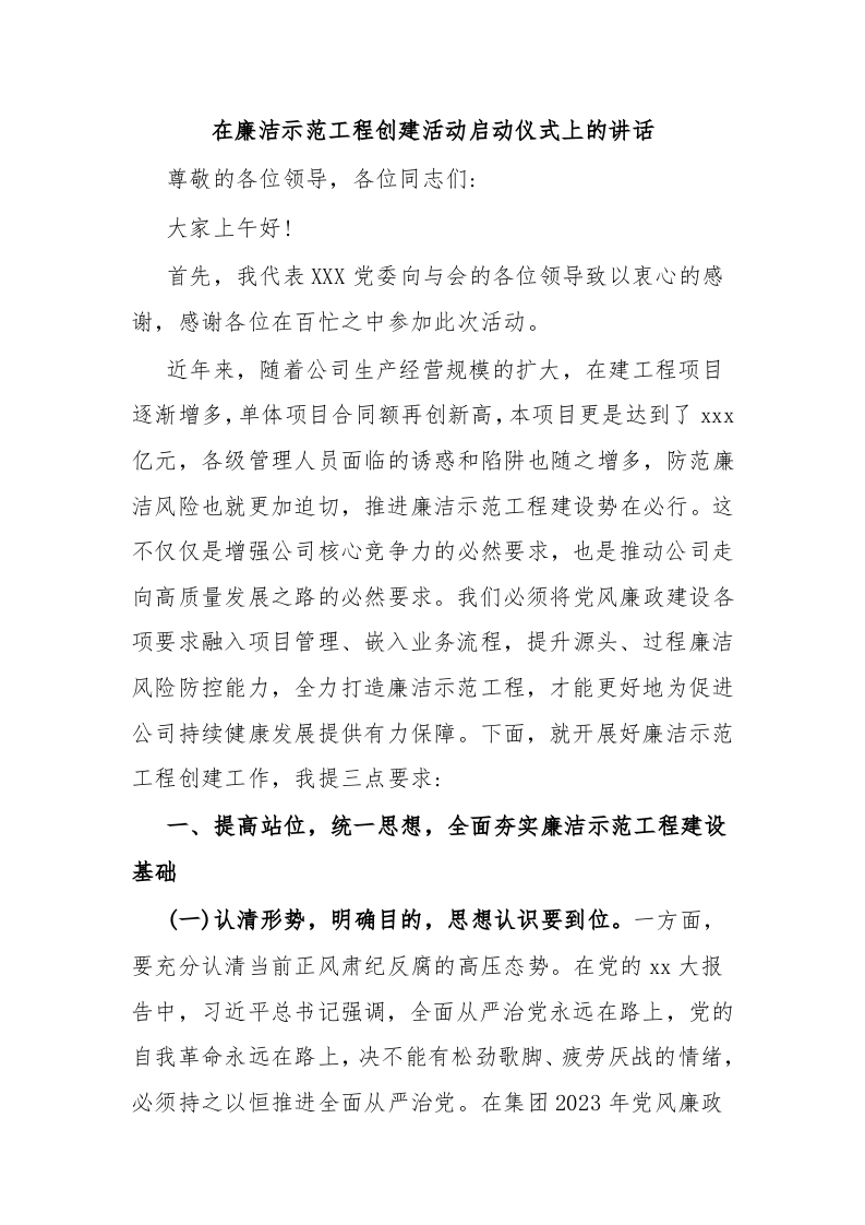 / 在廉洁示范工程创建活动启动仪式上的讲话