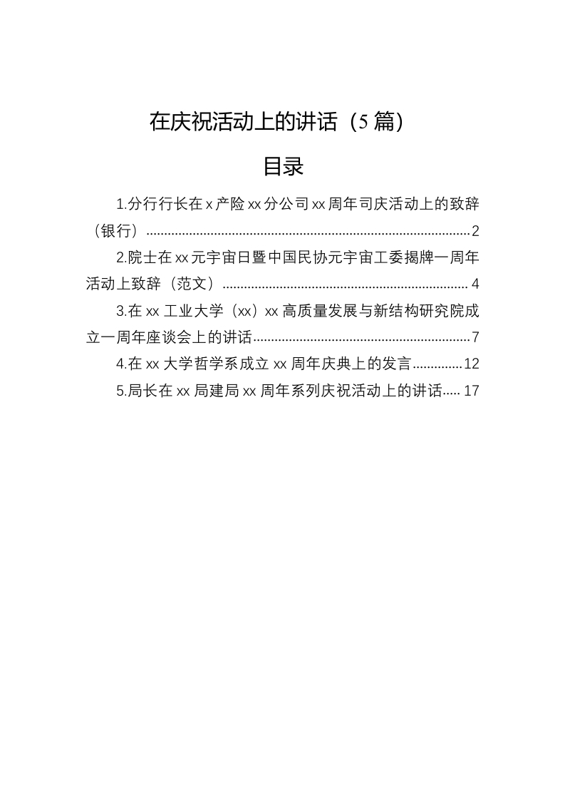 / 在庆祝活动上的讲话(5篇)