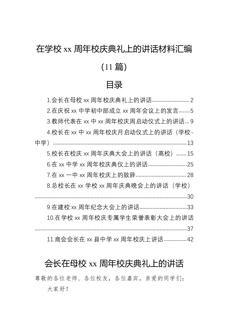 / 在学校xx周年校庆典礼上的讲话材料汇编(11篇)
