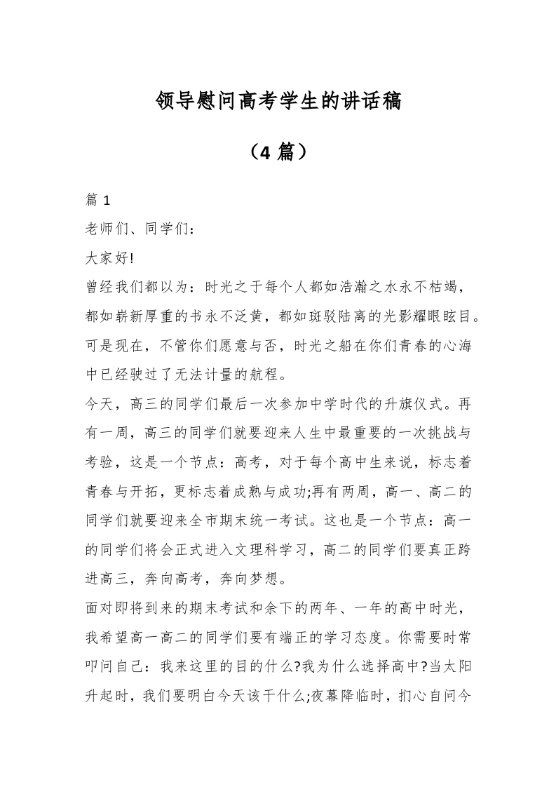 / (4篇)领导慰问高考学生的讲话稿
