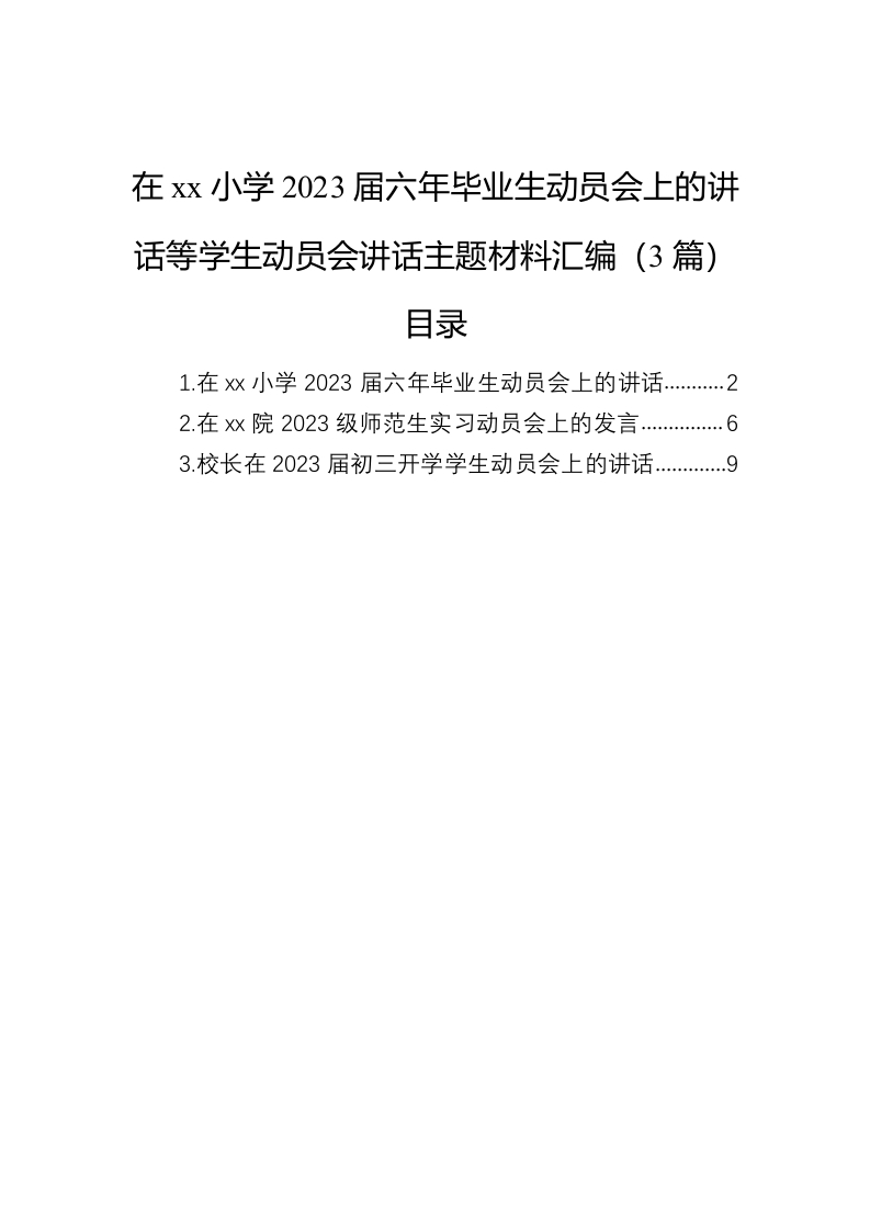 / 在xx小学2023届六年毕业生动员会上的讲话等学生动员会讲话主题材料汇编(3篇)