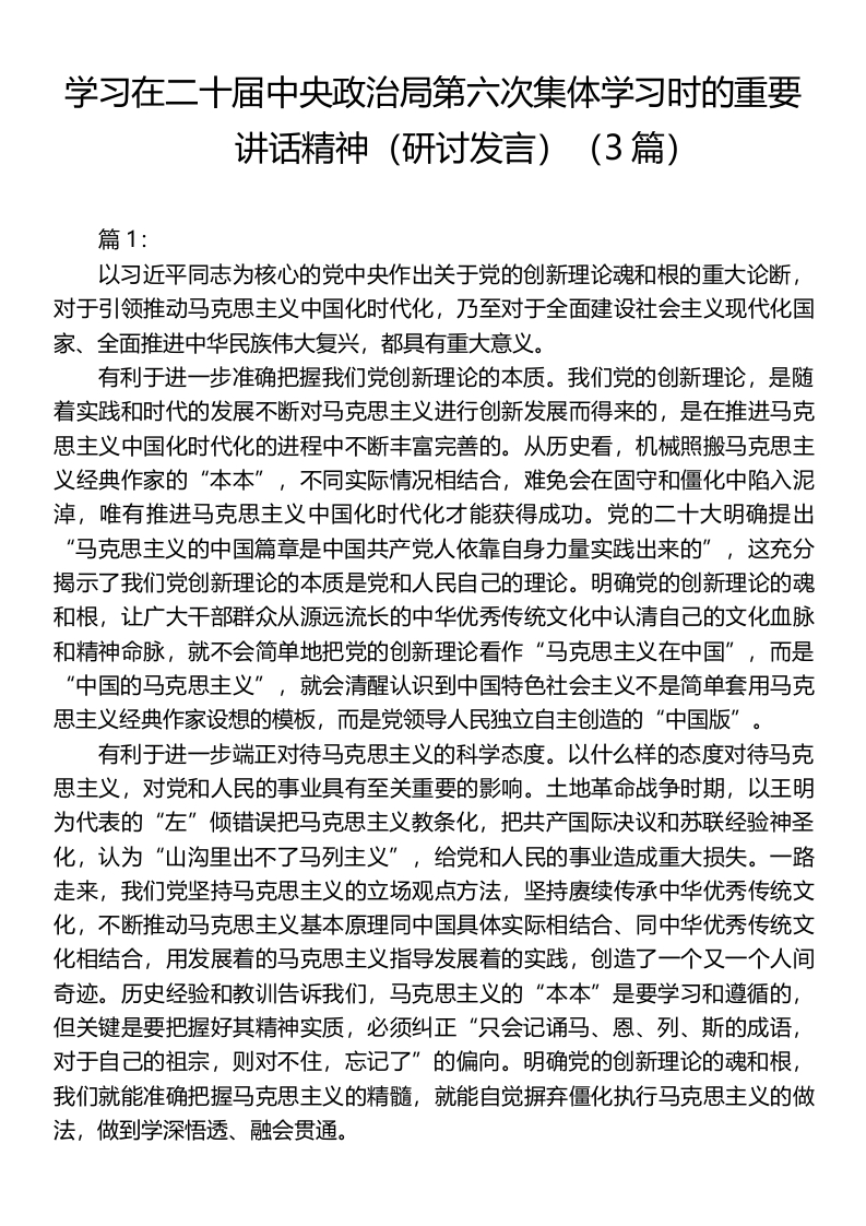 / (3篇)学习在二十届中央政治局第六次集体学习时的重要讲话精神