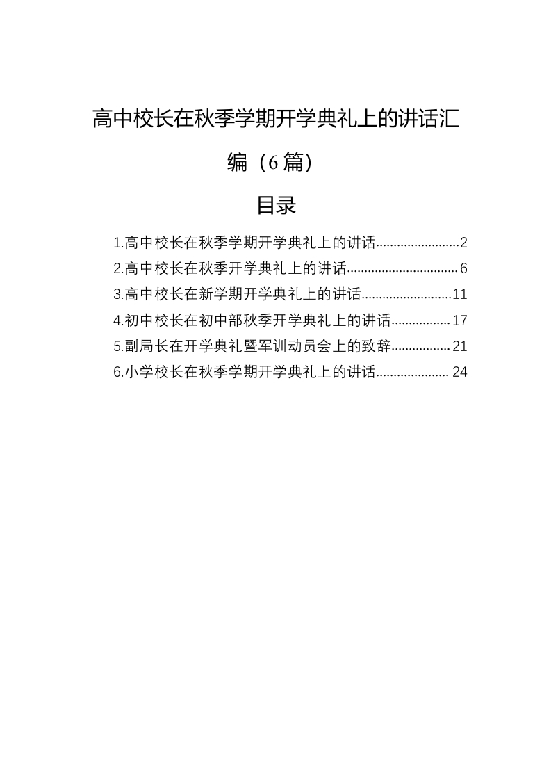 / 高中校长在秋季学期开学典礼上的讲话汇编(6篇)