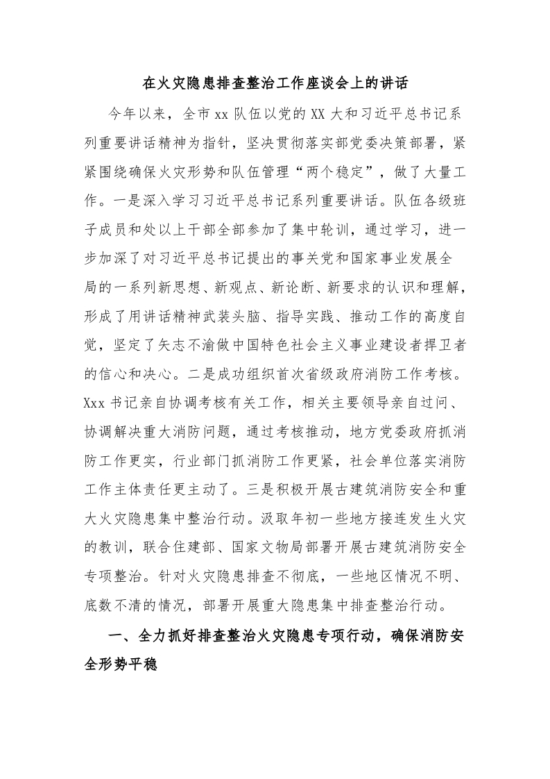 / 在火灾隐患排查整治工作座谈会上的讲话