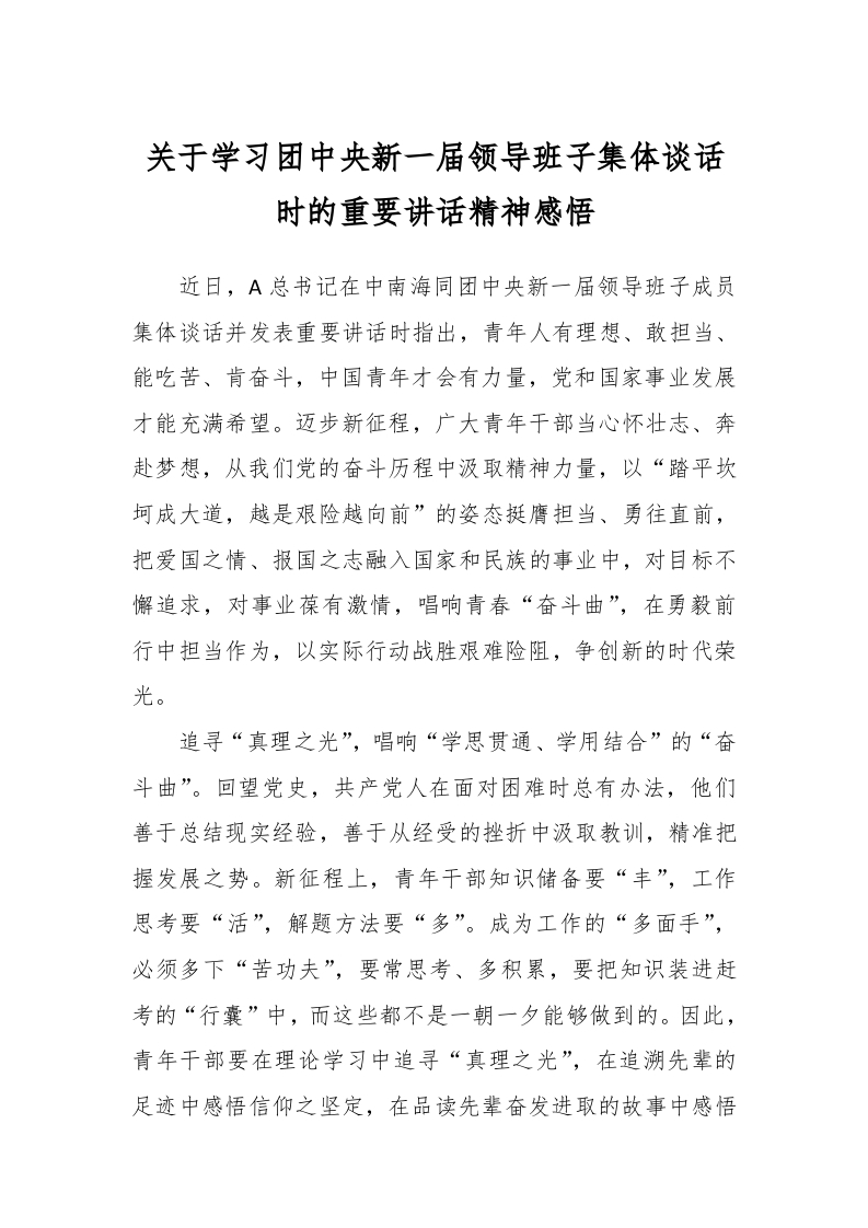 / 关于学习团中央新一届领导班子集体谈话时的重要讲话精神感悟