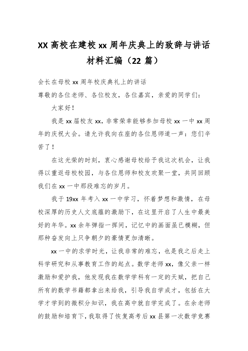 / (22篇)XX高校在建校xx周年庆典上的致辞与讲话材料汇编