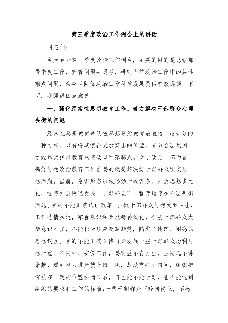 队伍建设形势分析暨半年工作总结部署视频会上的讲话