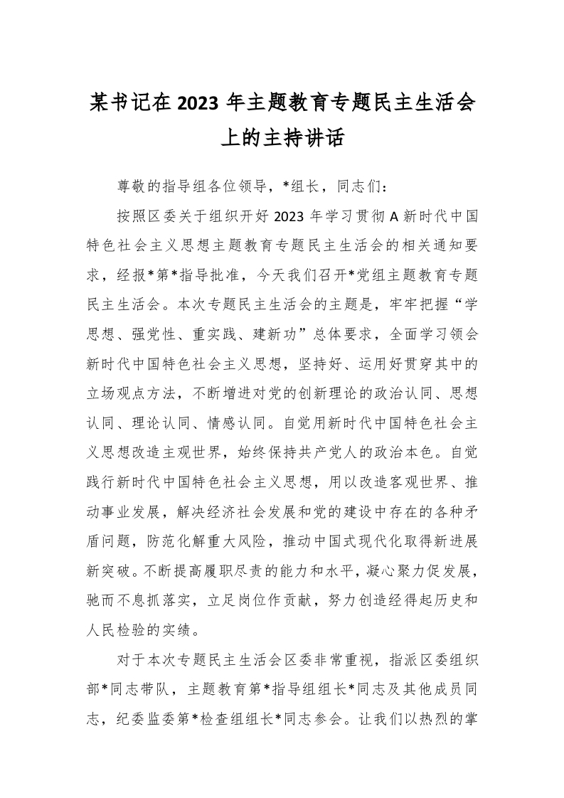 / 某书记在2023年主题教育专题民主生活会上的主持讲话