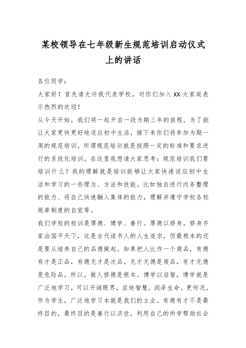 / 某校领导在七年级新生规范培训启动仪式上的讲话