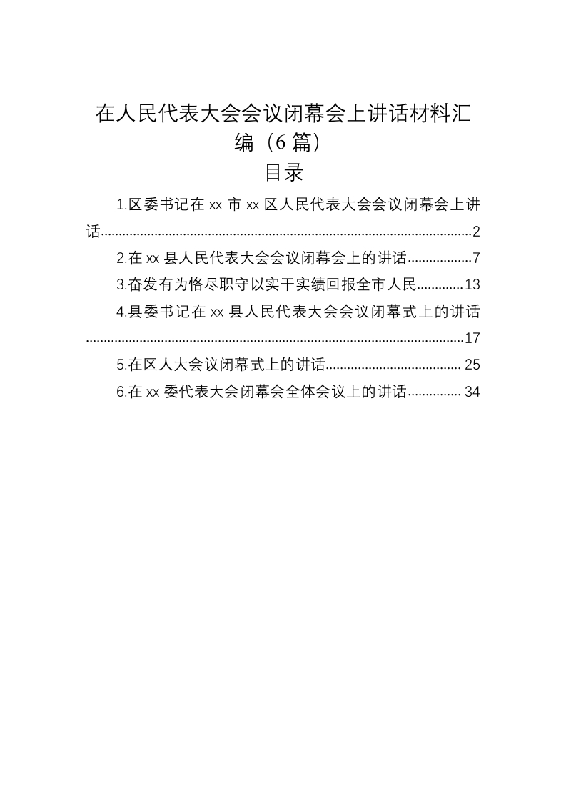 / 在人民代表大会会议闭幕会上讲话材料汇编(6篇)