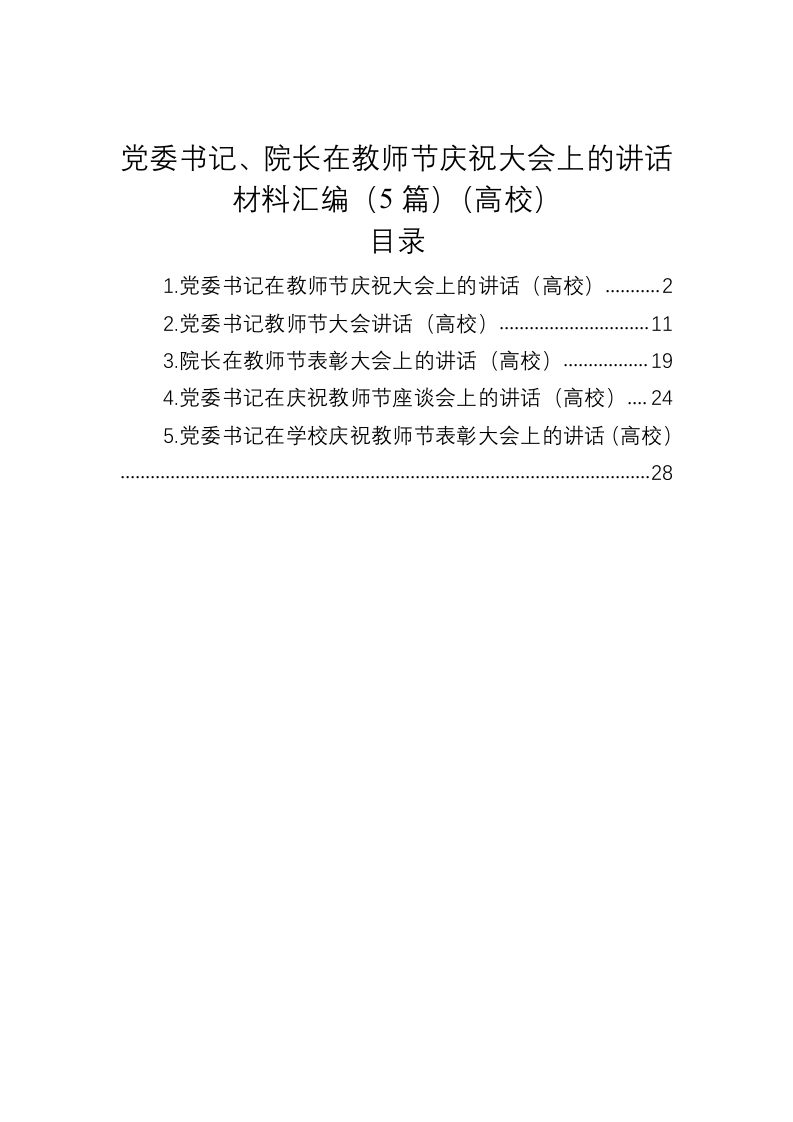 / 党委书记、院长在教师节庆祝大会上的讲话材料汇编(5篇)(高校)