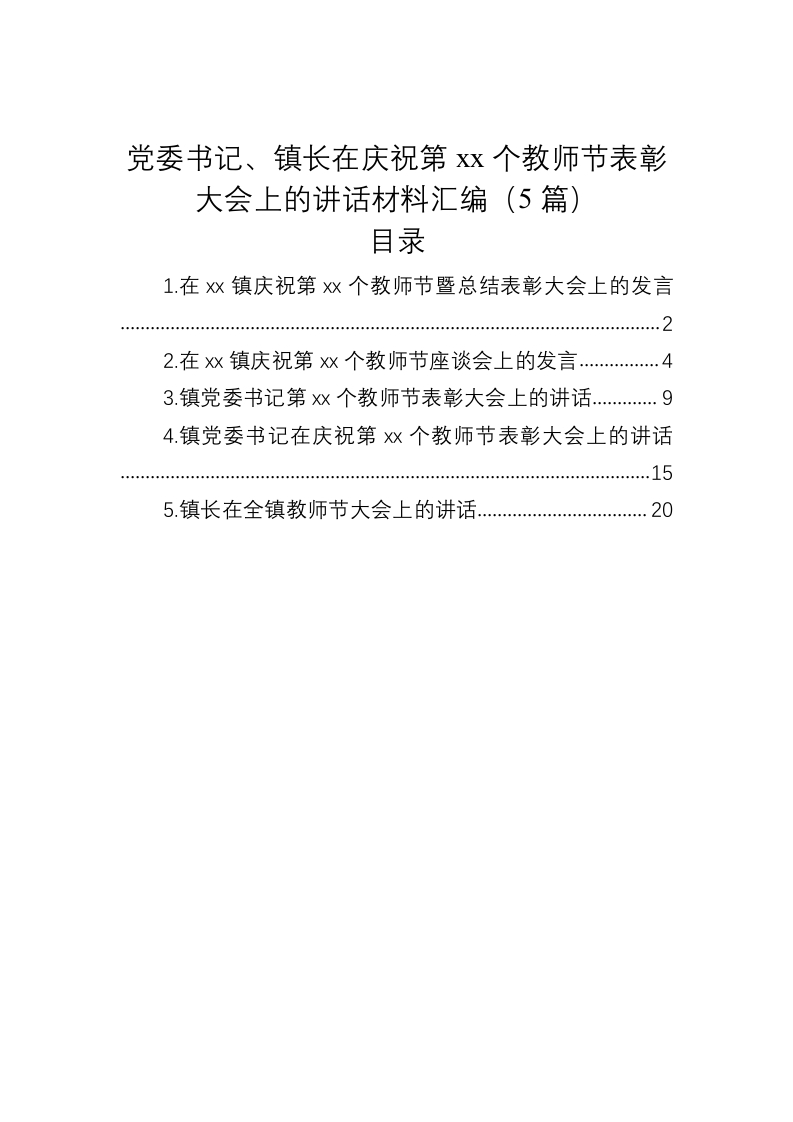/ 党委书记、镇长在庆祝第xx个教师节表彰大会上的讲话材料汇编(5篇)
