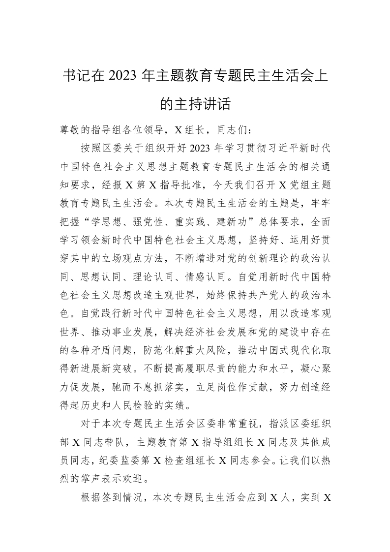 / 书记在2023年主题教育专题民主生活会上的主持讲话