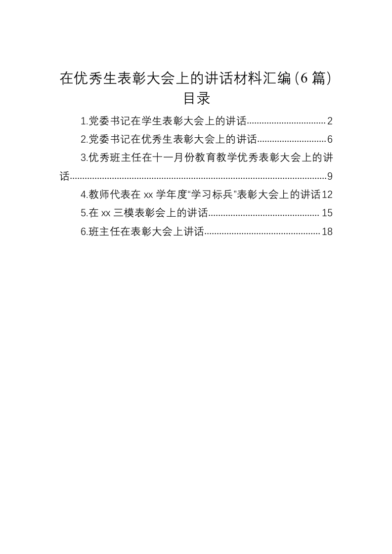 / 在优秀生表彰大会上的讲话材料汇编(6篇)
