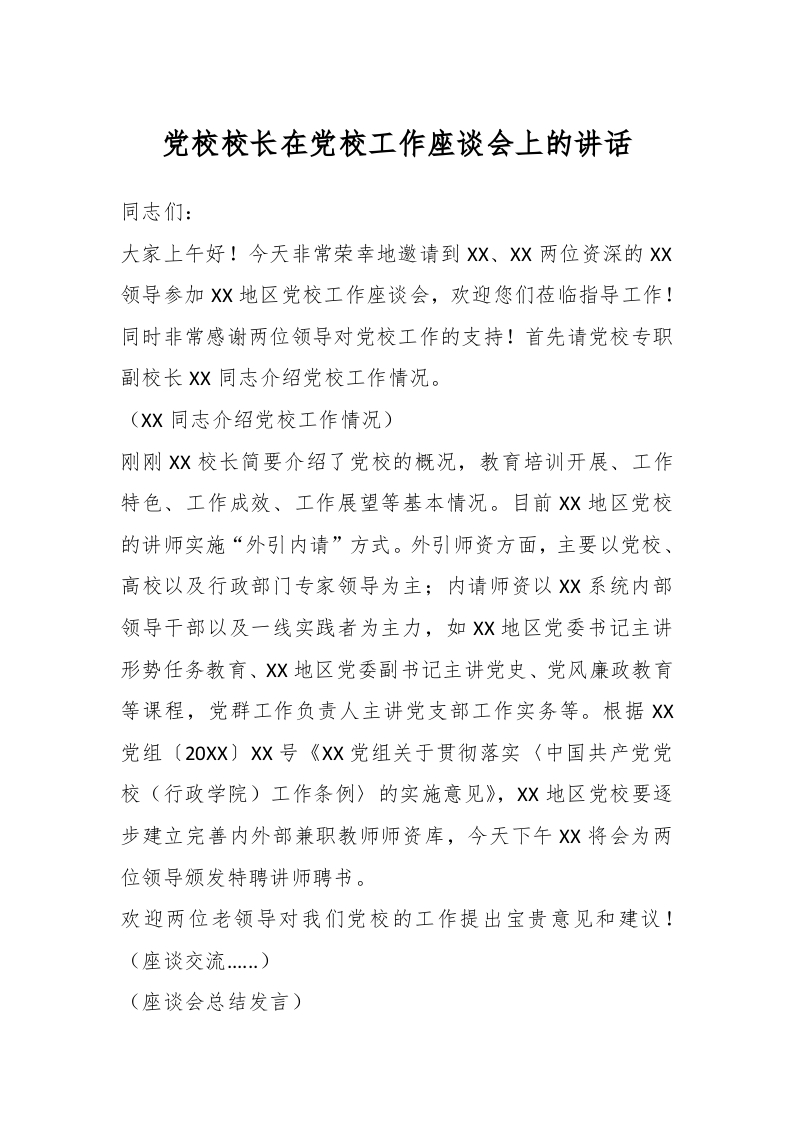 / 党校校长在党校工作座谈会上的讲话