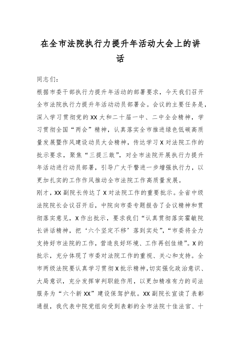 / 领导在全市法院执行力提升年活动大会上的讲话