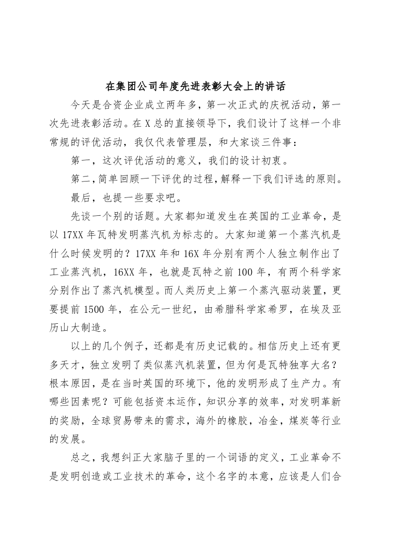 / 在集团公司年度先进表彰大会上的讲话