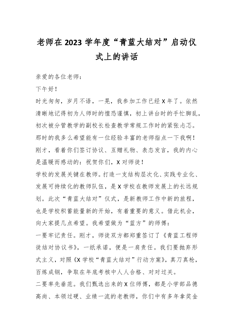 老师在2023学年度“青蓝大结对”启动仪式上的讲话